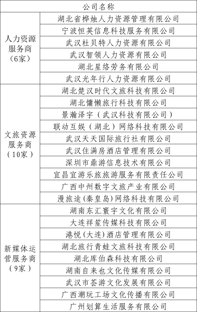 湖北數(shù)字文旅集團(tuán)有限公司2025年合作服務(wù)商入庫(kù)招募于2025年5月30日在官網(wǎng)發(fā)布招募公告。經(jīng)招募人確認(rèn),現(xiàn)進(jìn)行合作服務(wù)商入庫(kù)公示。