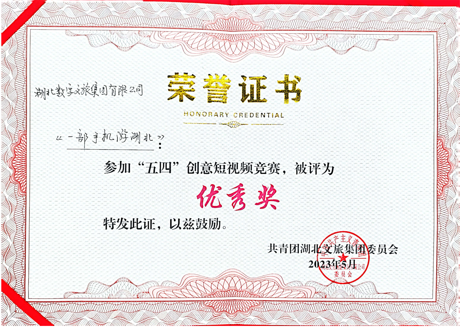 近日,湖北文旅集團團委授予數(shù)旅集團下屬湖北聚游科技有限公司團支部“五四紅旗團支部”榮譽稱號,授予聚游科技公司運營中心黃子驍“優(yōu)秀共青團員”榮譽稱號。聚游科技公司“一部手機游湖北”參加“五四”創(chuàng)意短視頻竟賽獲優(yōu)秀獎。